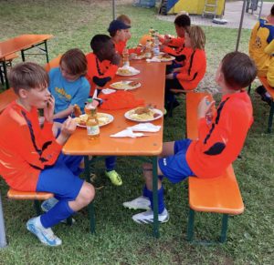 Neben dieser Attraktion warteten auf die 147 Kinder – übrigens eine neue Rekordteilnahme – 10 weitere Stationen mit vielen verschiedenen Übungen. Zudem gab es natürlich auch wieder eine Torwartgruppe, donnerstags die „Minis“, freitags die „Maxis“, die nicht nur durch ihre roten Trikots, sondern auch durch tolle Paraden auffielen.