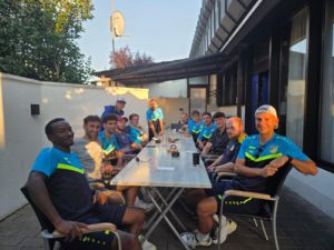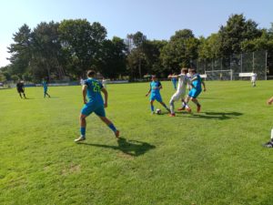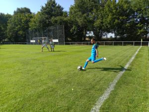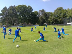 Im Rahmen des Trainingslagers stand für die Blau-Gelben nach einer intensiven Trainingseinheit am Vormittag noch ein Testspiel bei der zweiten Mannschaft des SV Hoffeld auf dem Programm. Bei hochsommerlichen Temperaturen keine leichte Aufgabe – doch die Blau-Gelben übernahmen schnell die Kontrolle über das Spiel.