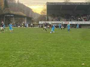 Die Partie begann im altehrwürdigen Stadion bei katastrophalen Platzverhältnissen. „Ein sauberes Fußballspiel wird das hier heute nicht“ war die eindeutige Schlussfolgerung auf den Zuschauerrängen. Wenn man bedenkt, dass hier u.a. schon Karl Allgöwer, Jürgen Klinsmann und mindestens zehn andere Ex-Profis die Stiefel schnürten, natürlich sehr ernüchternd. Nach 10 Minuten kam der Gastgeber zum ersten gefährlichen Abschluss, Damiano de Lucia verzog am Tor vorbei. Nach gut 20 Minuten setzte sich Gabriel Körtge Corral auf dem Flügel gegen zwei Gegenspieler durch, die scharfe Hereingabe erreichte aber niemand. Nach 33 Minuten wurde nach einem Eckball ein Schuss von Marcel Berberoglu geblockt. Tino Danneckers Abschluss nach 40 Minuten beschwor nicht wirklich Gefahr hervor. Bis zum Pausenpfiff hatte sich alles in Allem ein Spiel mit vielen langen Bällen entwickelt. Jeder Zweikampf wurde mit hoher Intensität geführt. Wie auf dem Untergrund erwartet hatte sich ein klassisches Kampfspiel entwickelt, das nicht schön anzusehen war. „Vermutlich wird ein Standard oder Fernschuss das Ding entscheiden“ wurde daher am Spielfeldrand spekuliert.