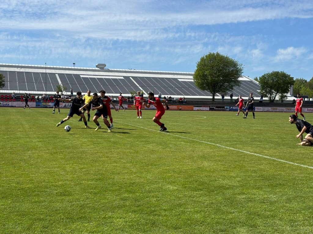 „Ohne vier“ (Sauter, Körtge Corral, Berberoglu, Jäger und ohne Trainer Johannes Pfeiffer) – gegenüber der Startaufstellung von letzter Woche – war die erste Anforderung für die Gäste, sich als Mannschaft zu finden. Dies passierte relativ schnell und es wurde deutlich, dass Plattenhardt versuchte tief zu stehen. Durch die engmaschige Defensive der Gastgeber wurde versucht mit schnellen und ab und zu weiträumigen Pässen die Abwehr auszuhebeln. Symeon Moll hatte nach 18 Minuten, bei einem der wenigen Angriffe der Gastgeber, die größte Chance des Spieles bis dahin, als er einen Kopfball freistehend aus kurzer Distanz neben das Tor zog. Nach 23 Minuten führte eine schöne Kombination zu einem aussichtsreichen Schuss von Kenan Kasikci, dem es aber ein bisschen an Wucht fehlte. Es kam fast wie es kommen musste, ein langer Ball von Plattenhardt, ein eher unmotiviertes herauslaufen von Torhüter Mustafa Görkem und der Torjäger der Gastgeber Aristidis Perhanidis hatte keine Mühe, den Ball zur 1:0 Führung nach einer halben Stunde über die Linie zu bugsieren. Das Heimteam baute sich mit jedem gewonnenen Zweikampf auf, den Blaugelben fiel zu wenig produktives ein. Die Spielanlage war nicht schlecht aber man schaffte es nicht, die TSVgg in Verlegenheit zu bringen. Als der Kommentar zur Halbzeit fast schon gesprochen war, schlug der TSV Ehningen zu. In der Nachspielzeit der ersten Halbzeit ging Kenan Kasikci rechts durch, flankte scharf nach innen und Maurice Dreher drückte den Ball zum 1:1 Halbzeitstand über die Linie.