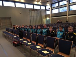 Mittwoch, 22.Februar um 18.00 Uhr. Eigentlich jagen die D1-Junioren um diese Zeit auf der Schalkwiese dem runden Leder nach. Doch diesmal treffen sie sich vor der Turn- und Festhalle. Und das aus gutem Grund. Sind sie doch wegen ihrem Staffelsieg im letzten Jahr zur Sportehrung der Gemeinde Ehningen eingeladen.