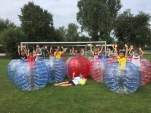 Natürlich durfte auch hier das Thema Fußball nicht fehlen. Als besondere Überraschung für die Kinder (und auch für die Erwachsenen) stand Bubble Soccer auf dem Programm. Wir konnten über einen Event-Anbieter aus Wildberg 10 BobbleSoccer Bälle buchen und hatten diese den ganzen Tag zum Spielen.