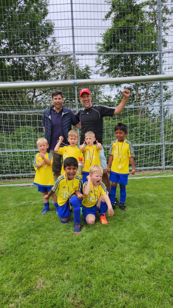 Bedingt durch den Ausfall eines Mitspielers sind unsere 2016er Bambinis nur zu fünft auf den Platz gegangen. Dennoch haben sie sich im Spiel behaupten können und das im Training geübte Kombinationsspiel angewendet. Dadurch war es ihnen in vielen Spiel möglich dem Gegner ihr Spiel aufzuzwingen und bis vor das gegnerische Tor zu kommen. Leider kam es nicht immer zum erfolgreichen Abschluss.Darüber hinaus haben die Spiele überwiegend im gegnerischen Raum stattgefunden, so dass die Gegner ihre Mühe hatten unsere Kicker am Tore schießen zu hindern. Trainer Josch war sehr begeistert vom Spielaufbau unserer Bambinis, und es ist schön zu sehen ,dass sich das Trainingskonzept bestätigt und die Jungs es hervorragend umsetzen.