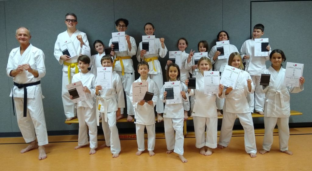 Somit bekamen die Anfänger Alessia Holder, Dominik Kovacs, Ozan Uludag, Cederik Rommel, Anastasiia Rommel, Bella Drasch, Cattaleya Baldassarre, Ammy Sommerfeld und Ronja Kazemzad den weisen Gürtel. Den gelben Gürtel tragen nun  Maria Merabet, Tim Deutsch und Anna Raith. Luisa Reichert, Matthias Reichert und Sedat Altindag haben die Prüfung zum orangen Gürtel bestanden.